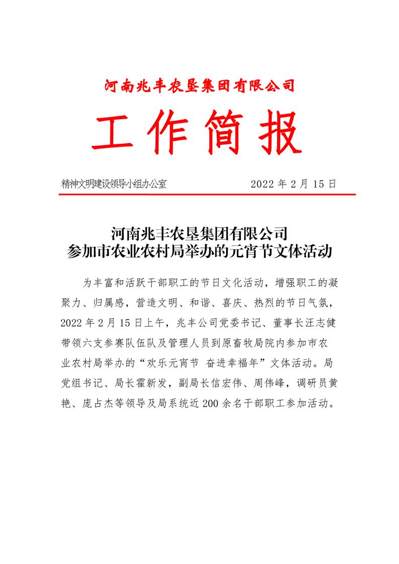 · 河南兆豐農(nóng)墾集團有限公司 參加市農(nóng)業(yè)農(nóng)村局舉辦的元宵節(jié)文體活動