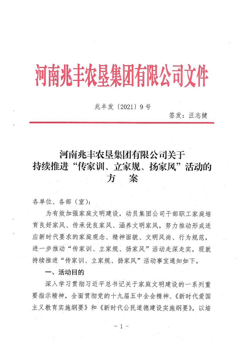 · 河南兆豐農(nóng)墾集團(tuán)有限公司 持續(xù)推進(jìn)“傳家訓(xùn)、立家規(guī)、揚(yáng)家風(fēng)”活動(dòng)的方案