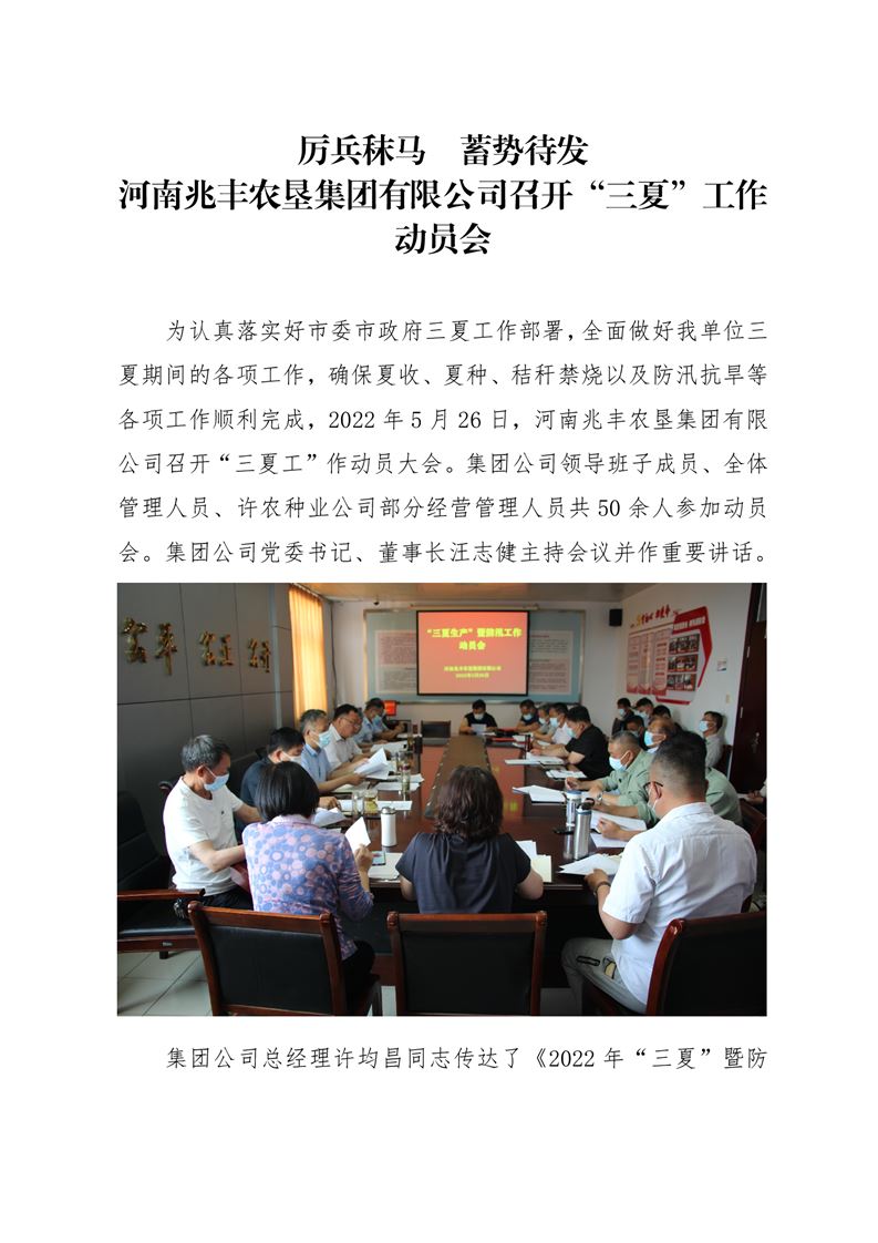 · 厲兵秣馬 蓄勢待發(fā) 河南兆豐農(nóng)墾集團有限公司召開“三夏”工作動員會