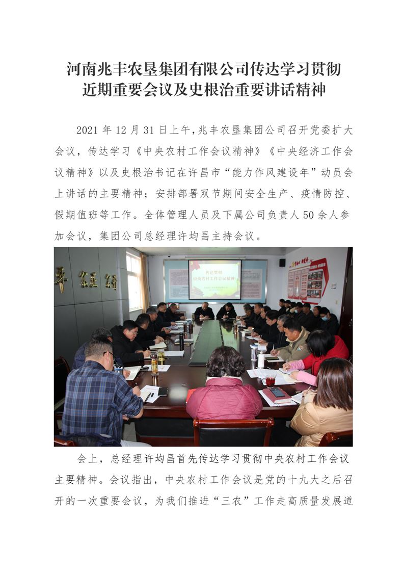 · 河南兆豐農(nóng)墾集團有限公司 傳達學習貫徹 近期重要會議及史根治重要講話精神