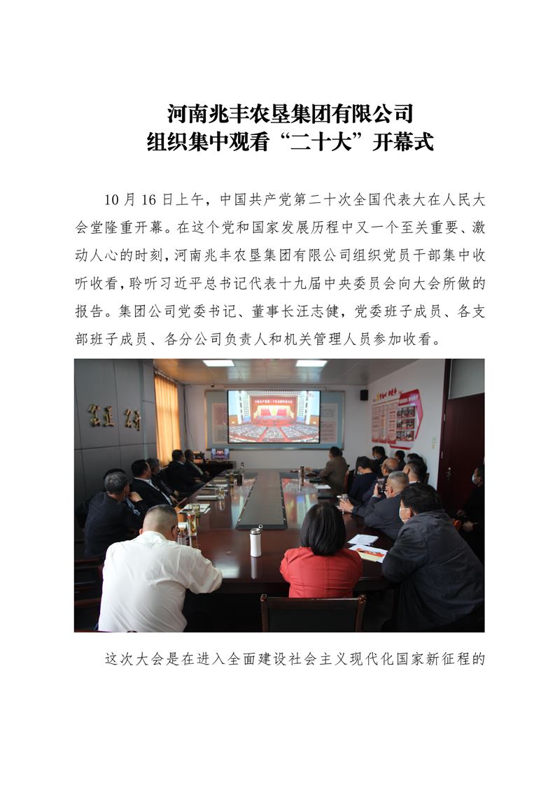 · 河南兆豐農(nóng)墾集團(tuán)有限公司 組織集中觀(guān)看“二十大”開(kāi)幕式