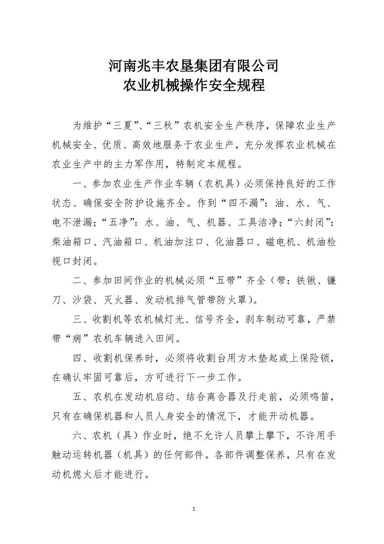 河南兆豐農(nóng)墾集團(tuán)有限公司 農(nóng)業(yè)機(jī)械操作安全規(guī)程