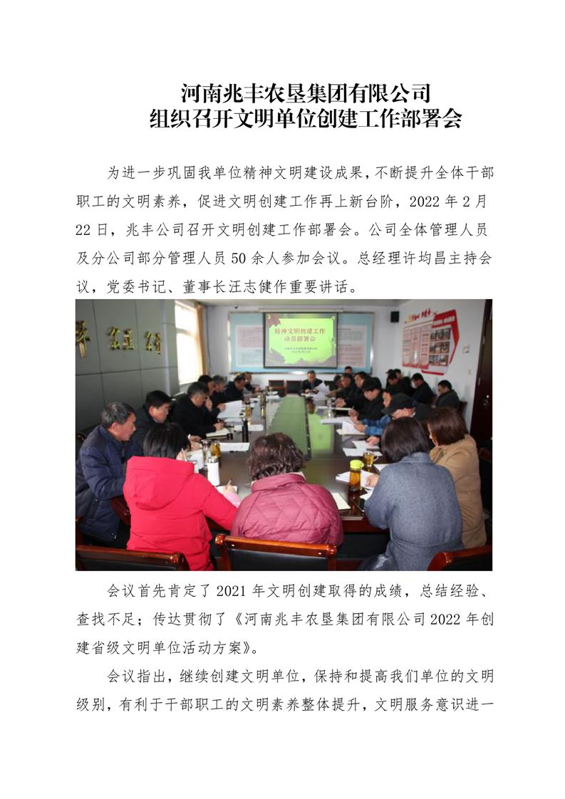 · 河南兆豐農(nóng)墾集團(tuán)有限公司 組織召開文明單位創(chuàng)建工作部署會(huì)