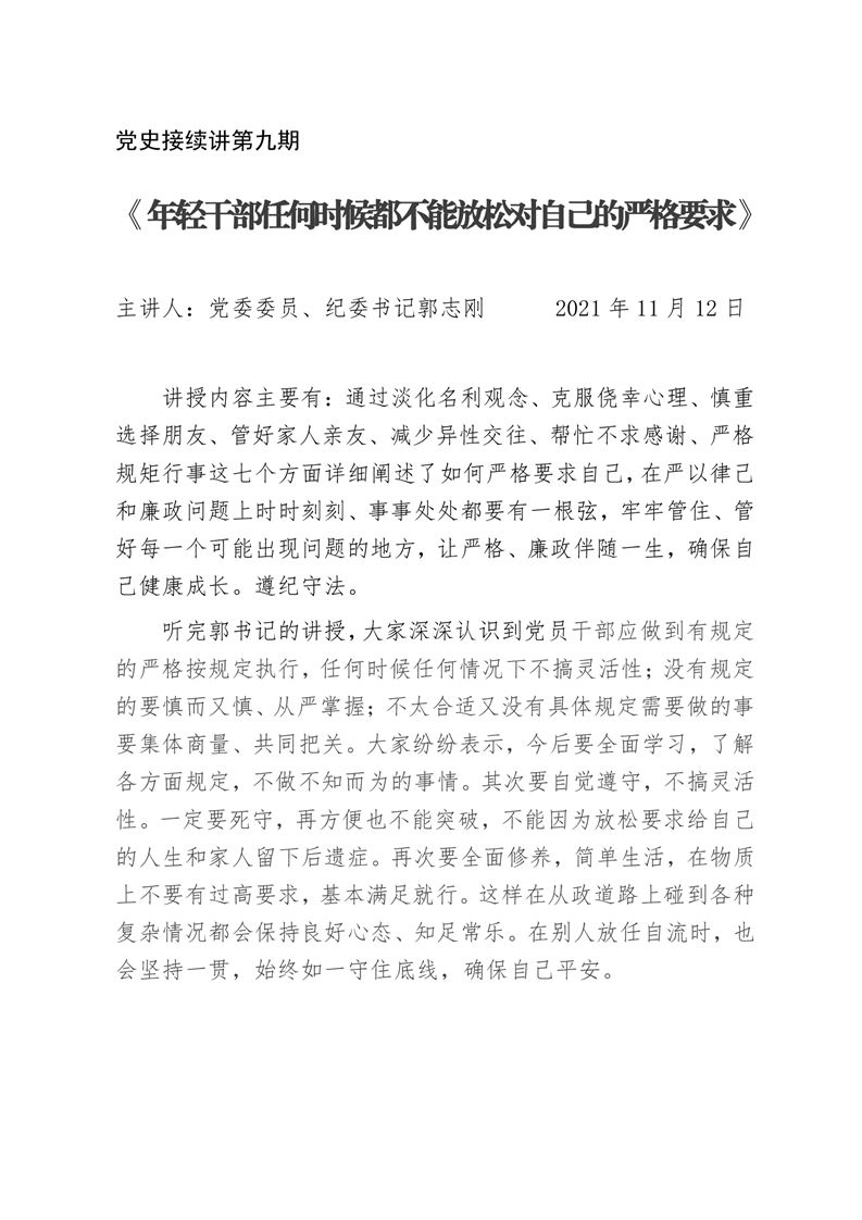 · 【黨史接續(xù)講第九期】《年輕干部任何時(shí)候都不能放松對(duì)自己的嚴(yán)格要求》--郭志剛
