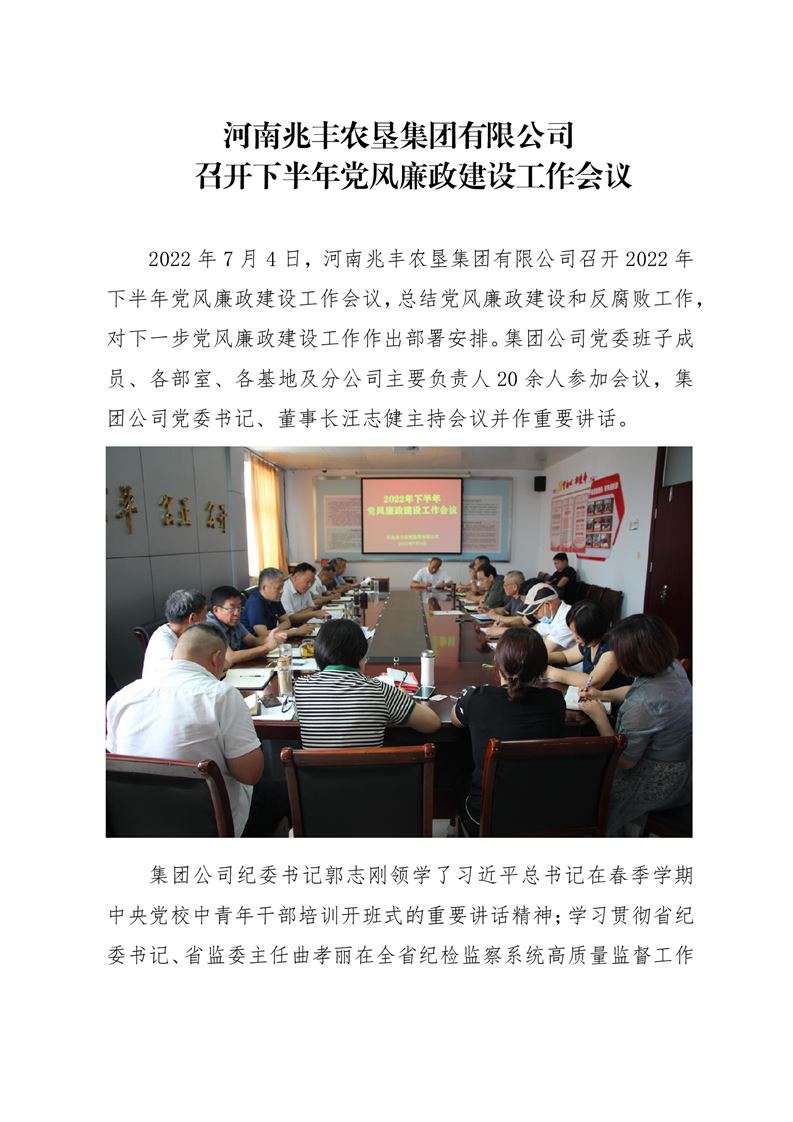 · 河南兆豐農(nóng)墾集團有限公司 召開下半年黨風廉政建設(shè)工作會議
