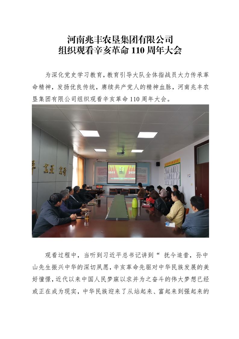 · 河南兆豐農(nóng)墾集團(tuán)有限公司 組織觀看辛亥革命110周年大會(huì)