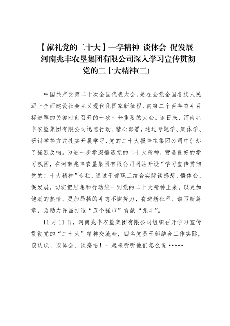 · 【獻禮黨的二十大】—學(xué)精神?談體會 促發(fā)展? 河南兆豐農(nóng)墾集團有限公司深入學(xué)習(xí)宣傳貫徹黨的二十大精神(二)