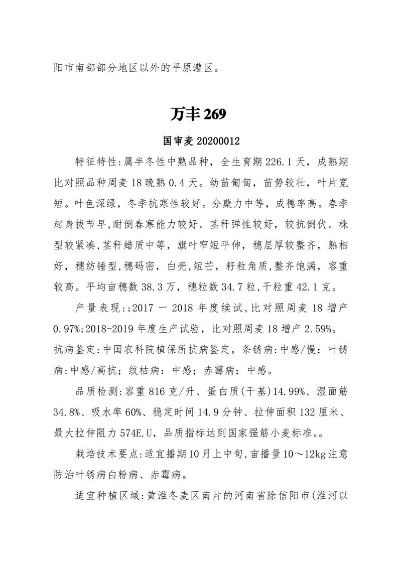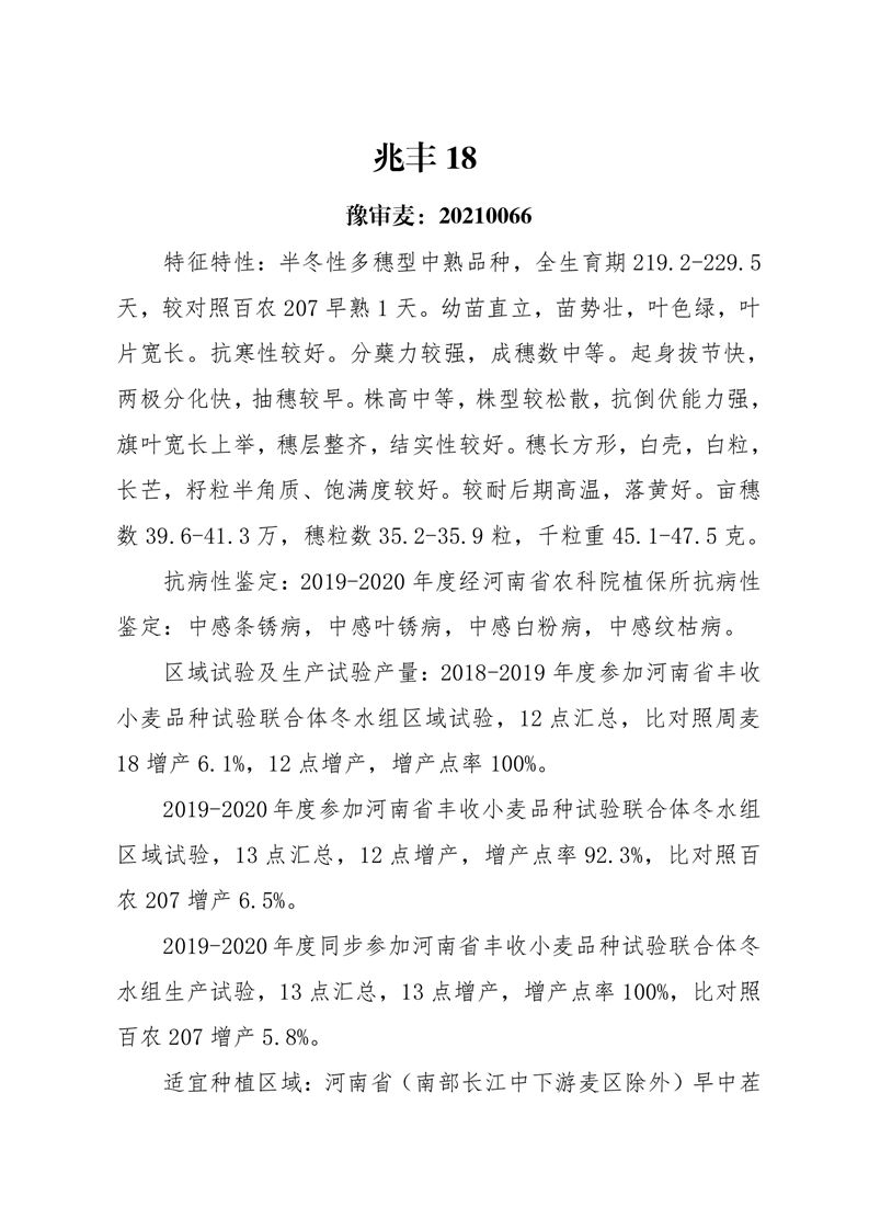 2021年河南省兆豐種業(yè)公司小麥可供品種