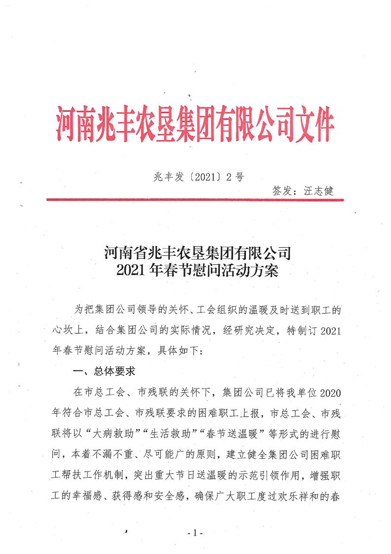 · 河南省兆豐農(nóng)墾集團(tuán)有限公司 2021年春節(jié)慰問活動方案
