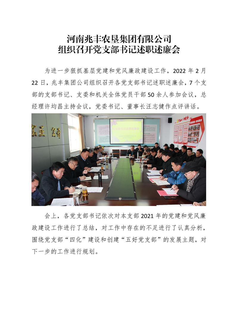 · 河南兆豐農(nóng)墾集團(tuán)有限公司 組織召開黨支部書記述職述廉會
