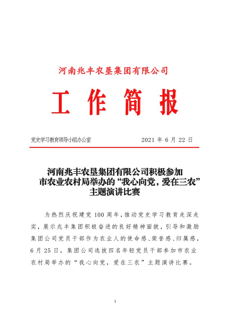 · 河南兆豐農(nóng)墾集團(tuán)有限公司 積極參加市農(nóng)業(yè)農(nóng)村局舉辦的“我心向黨,愛在三農(nóng)”主題演講比賽