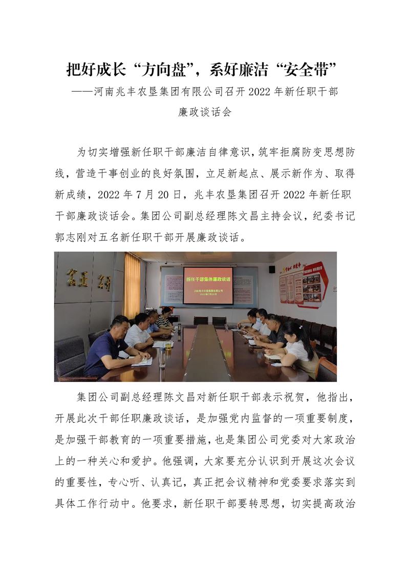 · 把好成長“方向盤”,系好廉潔“安全帶” ——河南兆豐農(nóng)墾集團(tuán)有限公司召開2022年新任職干部 廉政談話會(huì)