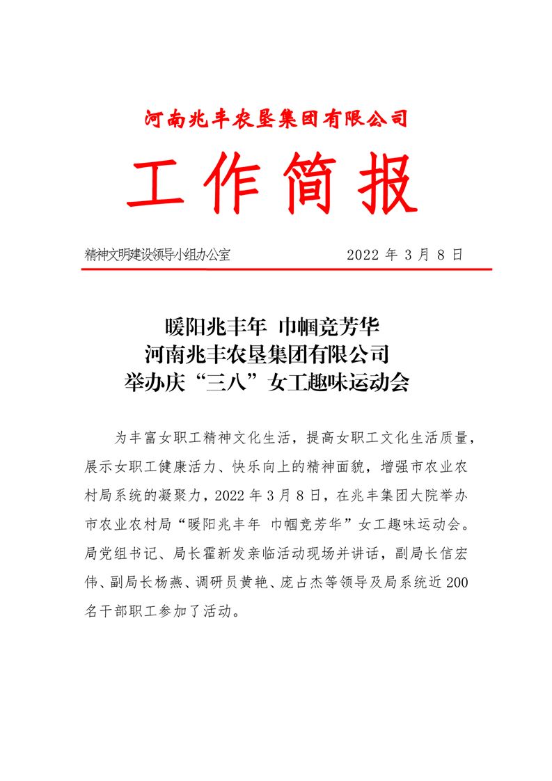 · 暖陽(yáng)兆豐年 巾幗競(jìng)芳華 河南兆豐農(nóng)墾集團(tuán)有限公司 舉辦慶“三八”女工趣味運(yùn)動(dòng)會(huì)