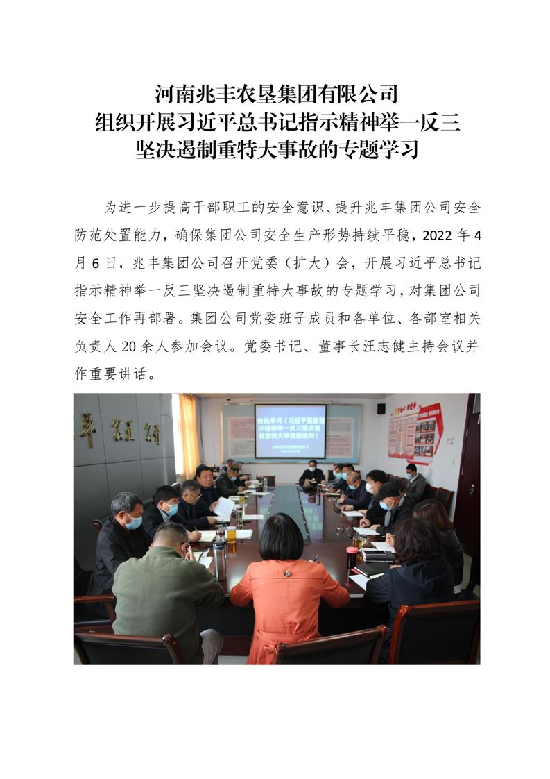 · 河南兆豐農(nóng)墾集團(tuán)有限公司 組織開展習(xí)近平總書記指示精神舉一反三堅(jiān)決遏制重特大事故的專題學(xué)習(xí)