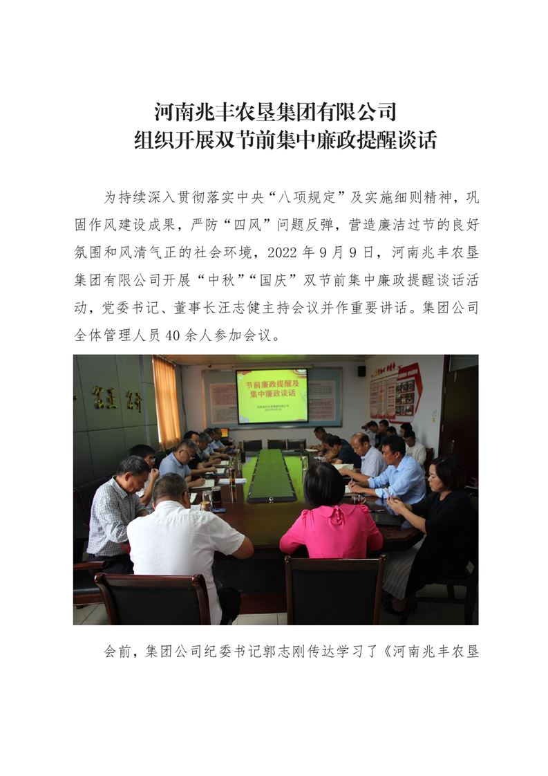 · 河南兆豐農(nóng)墾集團(tuán)有限公司 組織開(kāi)展雙節(jié)前集中廉政提醒談話