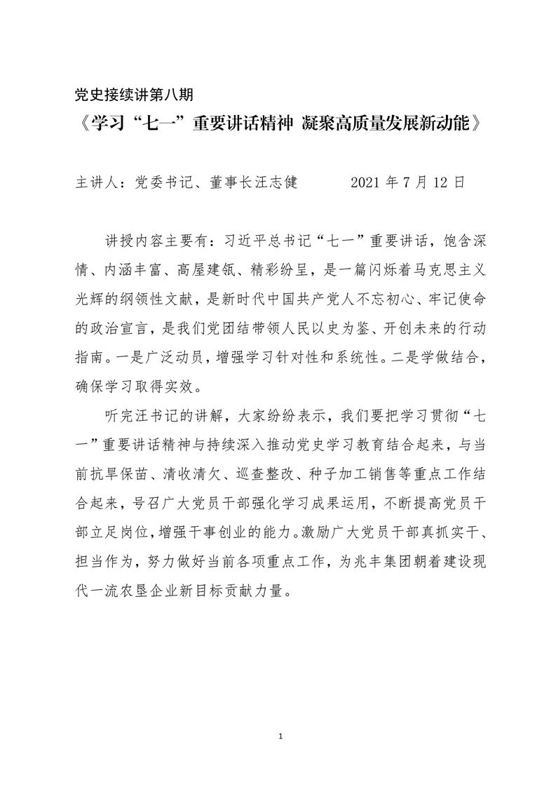 · 【黨史接續(xù)講第八期】《學(xué)習(xí)“七一”重要講話精神 凝聚高質(zhì)量發(fā)展新動能》——汪志健