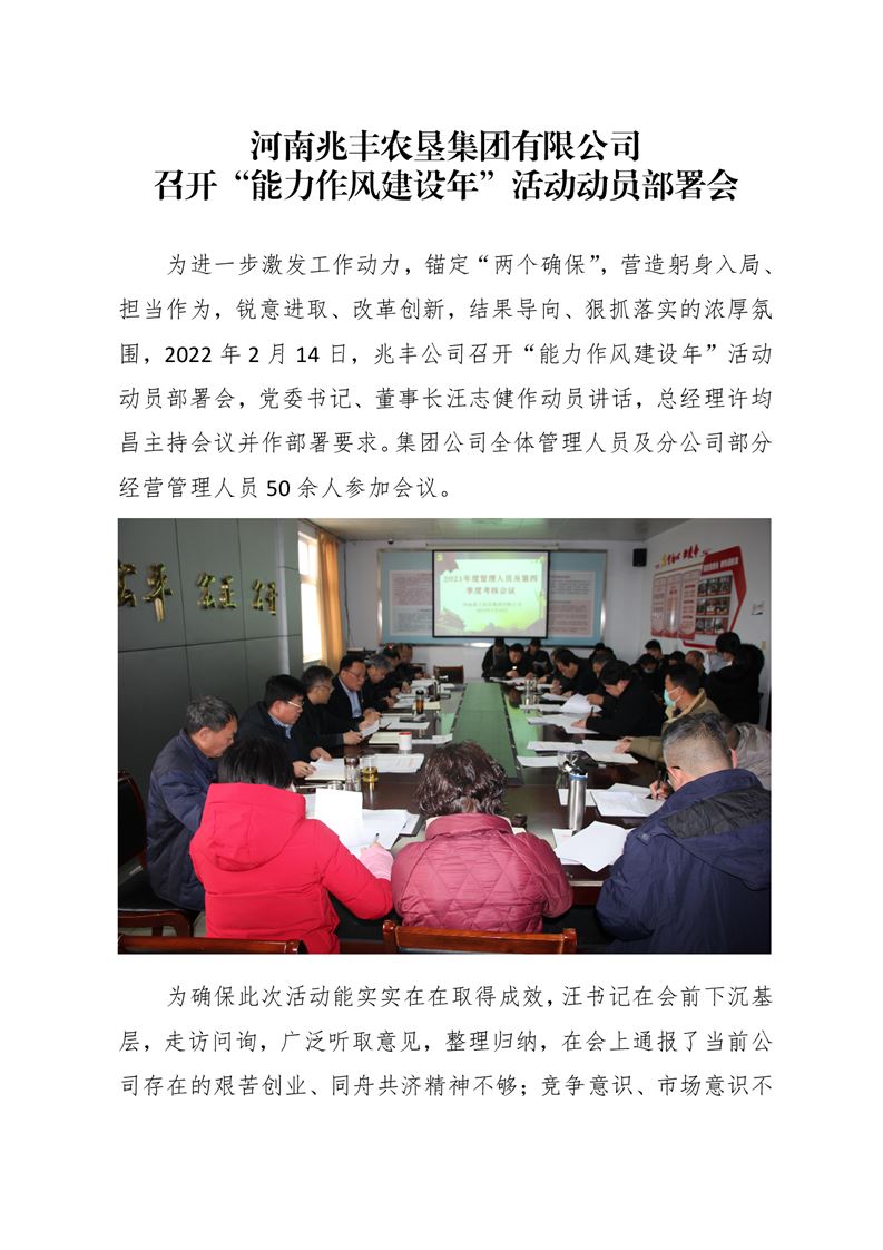 · 河南兆豐農(nóng)墾集團有限公司 召開“能力作風建設年”活動動員部署會