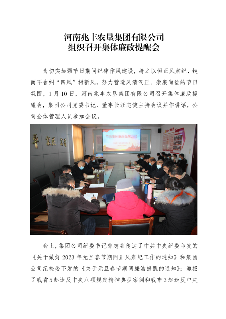 · 河南兆豐農(nóng)墾集團有限公司 組織召開集體廉政提醒會