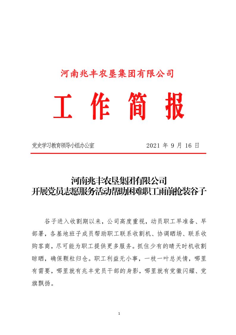 · 【我為職工辦實(shí)事】河南兆豐農(nóng)墾集團(tuán)有限公司 開(kāi)展黨員志愿服務(wù)活動(dòng)幫助困難職工雨前搶裝谷子