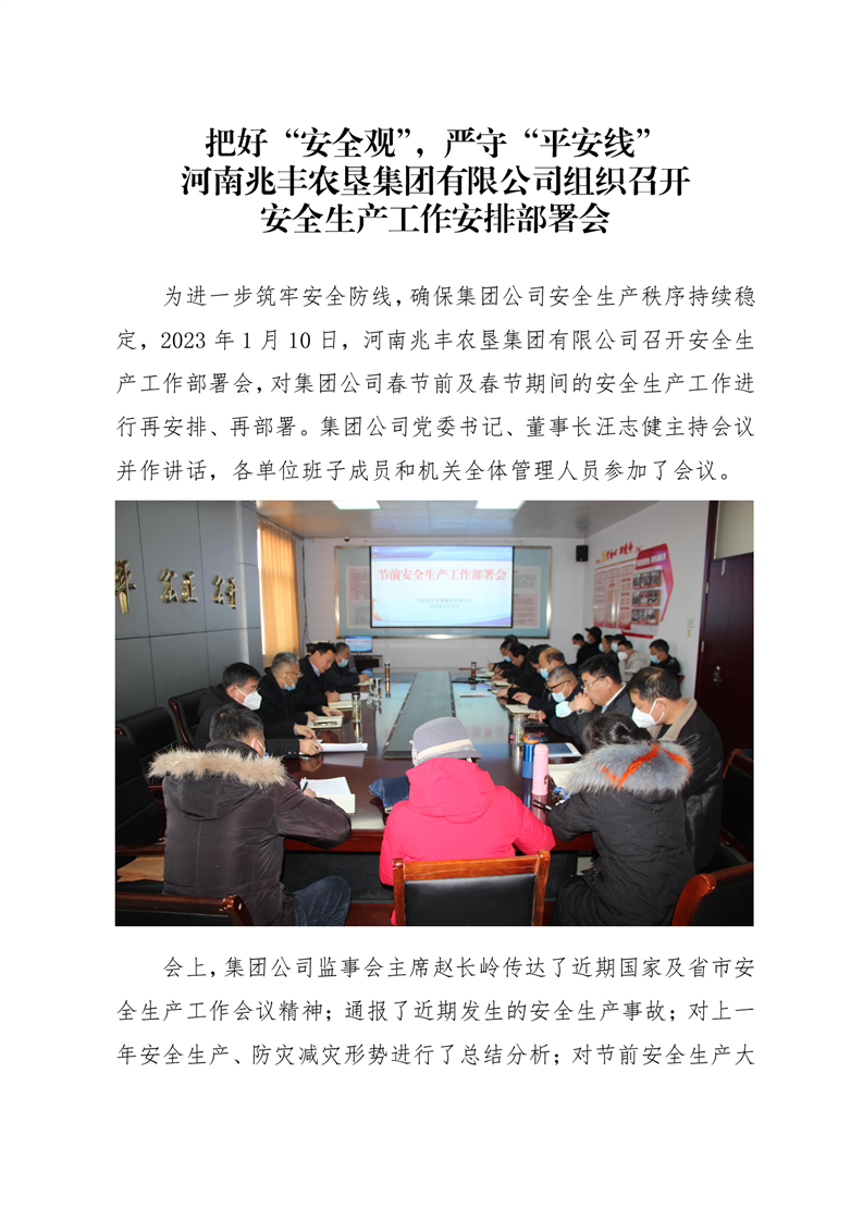 · 把好“安全觀”,嚴(yán)守“平安線” 河南兆豐農(nóng)墾集團(tuán)有限公司組織召開 安全生產(chǎn)工作安排部署會(huì)