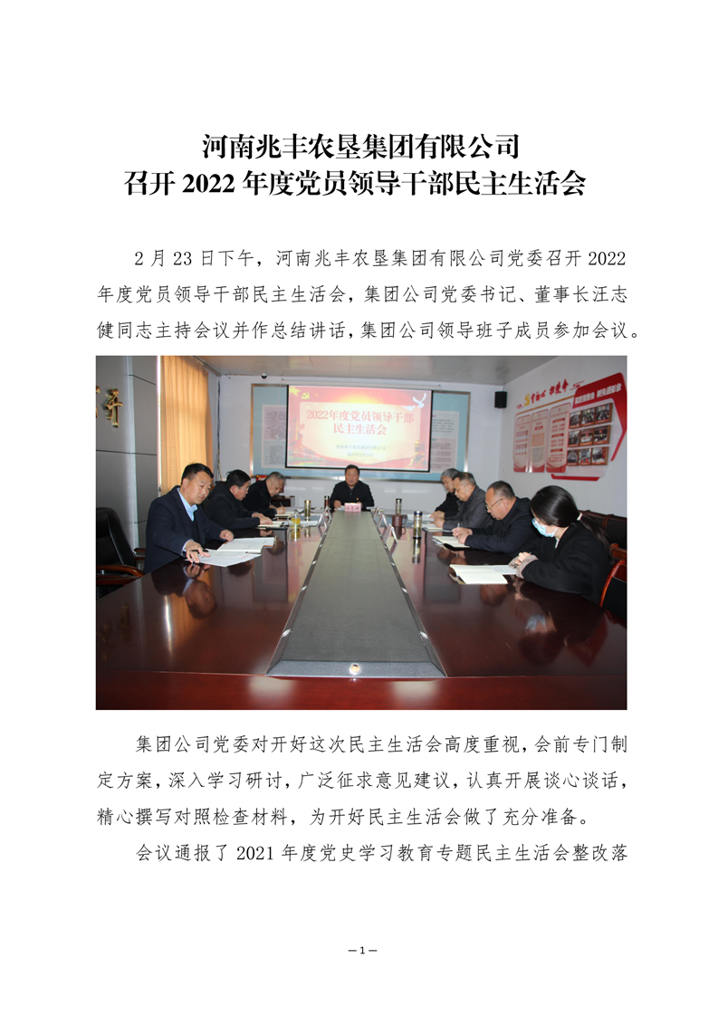 · 河南兆豐農墾集團有限公司 召開2022年度黨員領導干部民主生活會