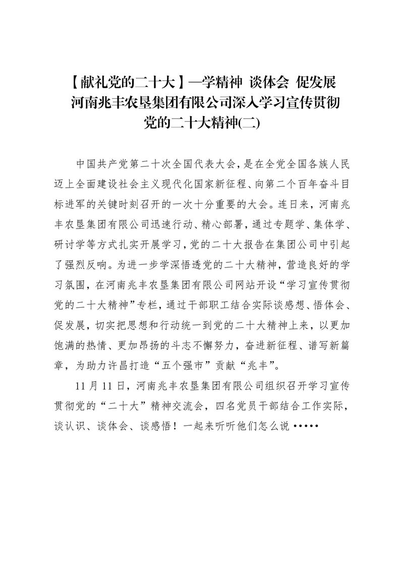 · 【獻禮黨的二十大】—學精神 談體會 促發(fā)展 河南兆豐農(nóng)墾集團有限公司深入學習宣傳貫徹 黨的二十大精神(二)