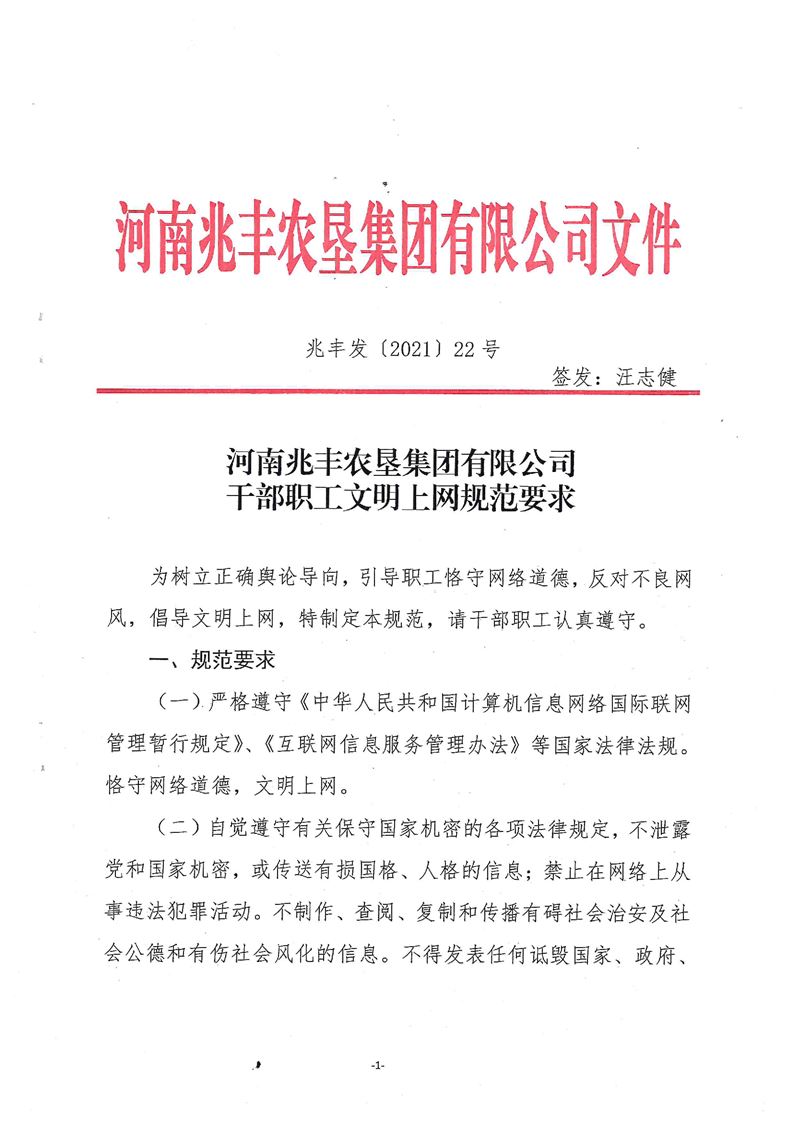 · 河南兆豐農(nóng)墾集團(tuán)有限公司 干部職工文明上網(wǎng)規(guī)范要求