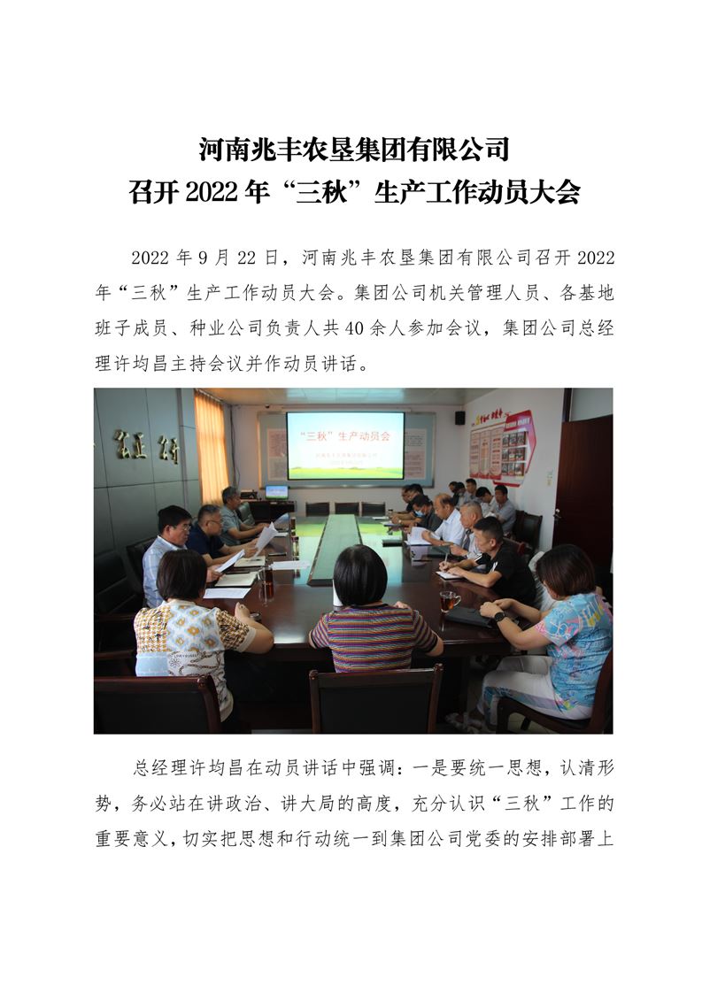 · 河南兆豐農(nóng)墾集團(tuán)有限公司 召開2022年“三秋”生產(chǎn)工作動員大會