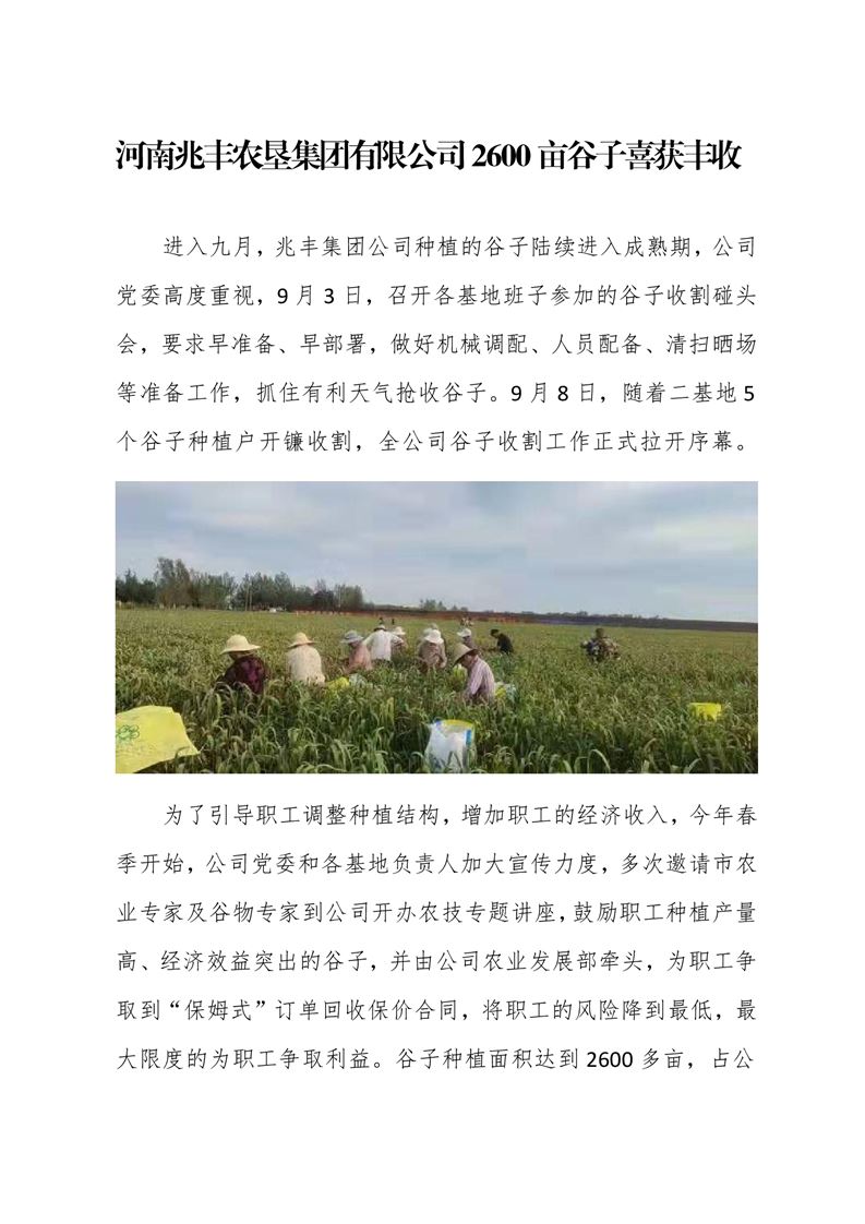 · 河南兆豐農(nóng)墾集團有限公司 2600畝谷子喜獲豐收