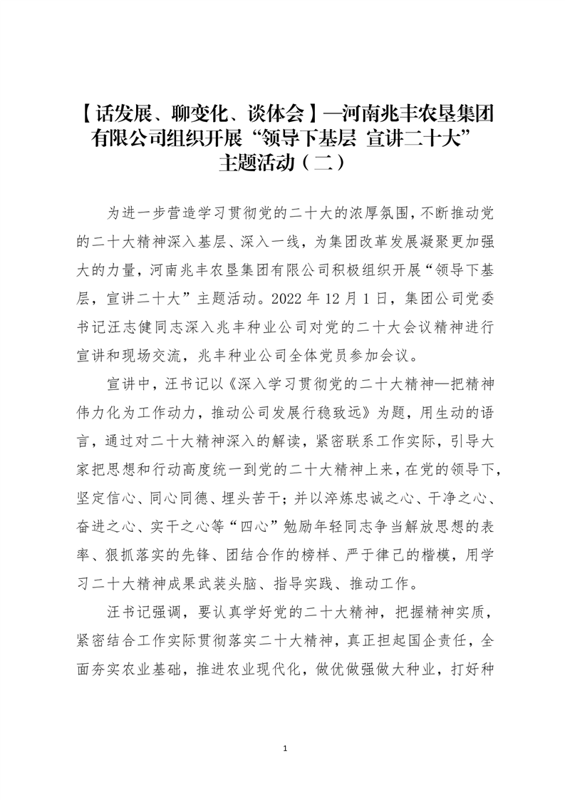 · 【話發(fā)展、聊變化、談體會】—河南兆豐農(nóng)墾集團有限公司組織開展“領(lǐng)導下基層 宣講二十大” 主題活動(二)