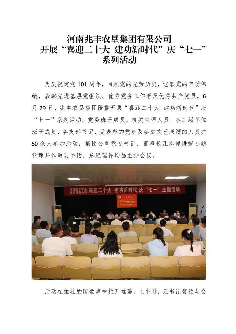 · 河南兆豐農(nóng)墾集團(tuán)有限公司 開展“喜迎二十大 建功新時代”慶“七一”系列活動