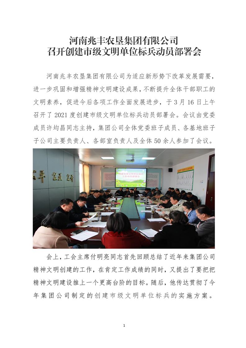 · 河南兆豐農(nóng)墾集團(tuán)有限公司 召開(kāi)創(chuàng)建市級(jí)文明單位標(biāo)兵動(dòng)員部署會(huì)