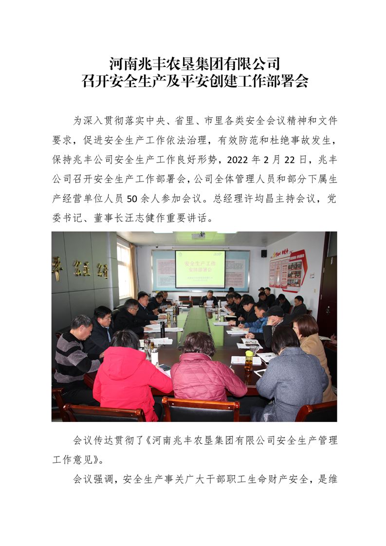 · 河南兆豐農(nóng)墾集團(tuán)有限公司 召開(kāi)安全生產(chǎn)及平安創(chuàng)建工作部署會(huì)
