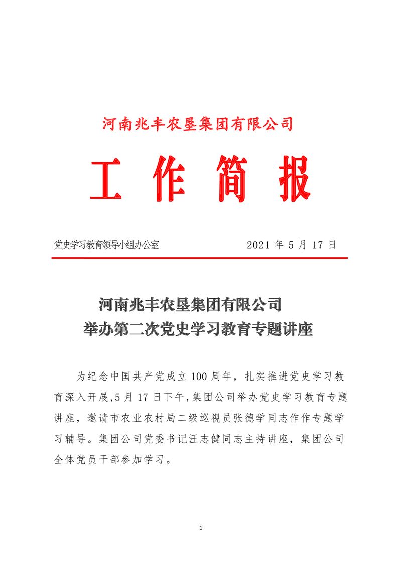 · 河南兆豐農(nóng)墾集團(tuán)有限公司 舉辦第二次黨史學(xué)習(xí)教育專題講座