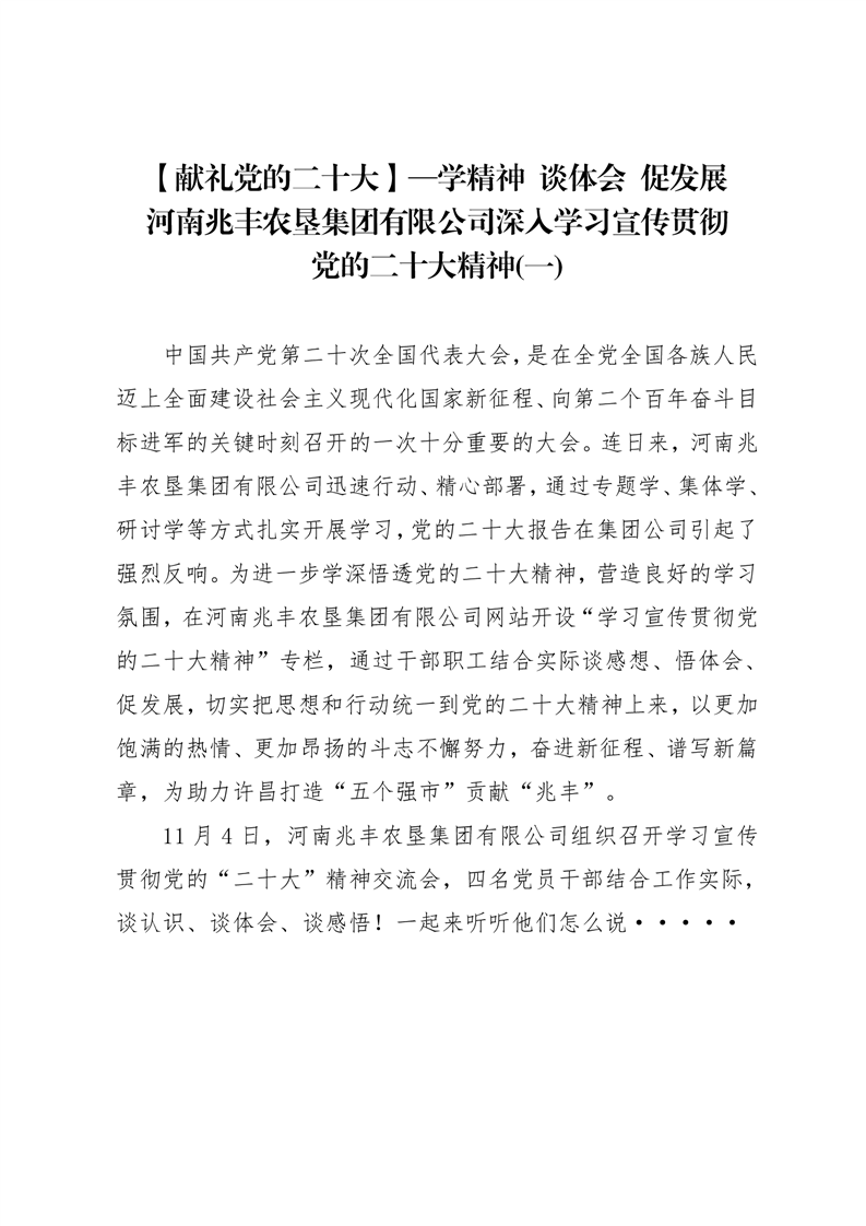 · 【獻(xiàn)禮黨的二十大】—學(xué)精神?談體會 促發(fā)展? 河南兆豐農(nóng)墾集團(tuán)有限公司深入學(xué)習(xí)宣傳貫徹黨的二十大精神(一)